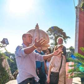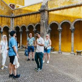Inizia la giornata tra le colline magiche di Sintra. Ti portiamo all'iconico Parco Pena, dove puoi passeggiare tra giardini esotici e ammirare l'architettura vivace ed eclettica del Palacio da Pena dalle sue famose terrazze esterne. Concentrandoti sulle splendide facciate del palazzo e sul parco intorno, scatti foto fantastiche e scopri la ricca storia della monarchia portoghese senza dover fare le code lunghe e affollate per entrare nelle sale interne.