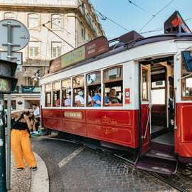Fai un giro sul mezzo di trasferimento più antico di Lisbona salendo a bordo di un tram per il Castelo São Jorge. Viaggia attraverso quartieri storici come Mouraria e Graça. Passa sotto il Ponte 25 de Abril e raggiungi Santa Maria de Belém a bordo della barca gialla.