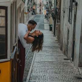 Non preoccuparti delle pose: ti guido attraverso i movimenti. Funziona come nella regia di una scena di un film: puoi abbracciare, correre, girare, ballare, ridere e, soprattutto, divertirti. Ognuno ha un modo unico di muoversi, e questa tecnica rispetta la tua naturalezza, creando foto davvero speciali. Tu vivi il momento e io ne registro ogni dettaglio, creando immagini reali che traducono chi sei veramente, e soprattutto, con Lisbona come sfondo.